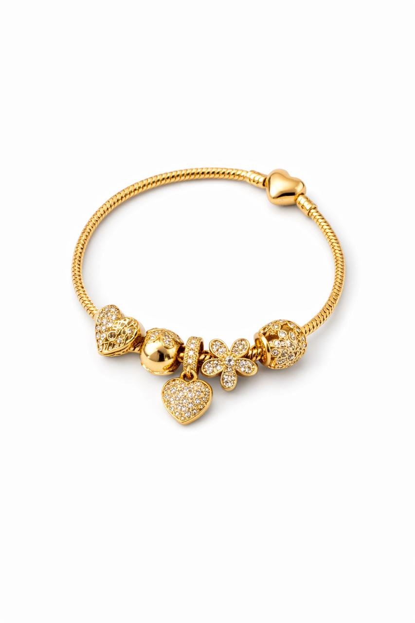 Pulseira estilo europeu com berloques decorativos, perfeita para quem gosta de acessórios delicados e cheios de significado. Ideal para montar combinações personalizadas e usar no dia a dia ou em ocasiões especiais.