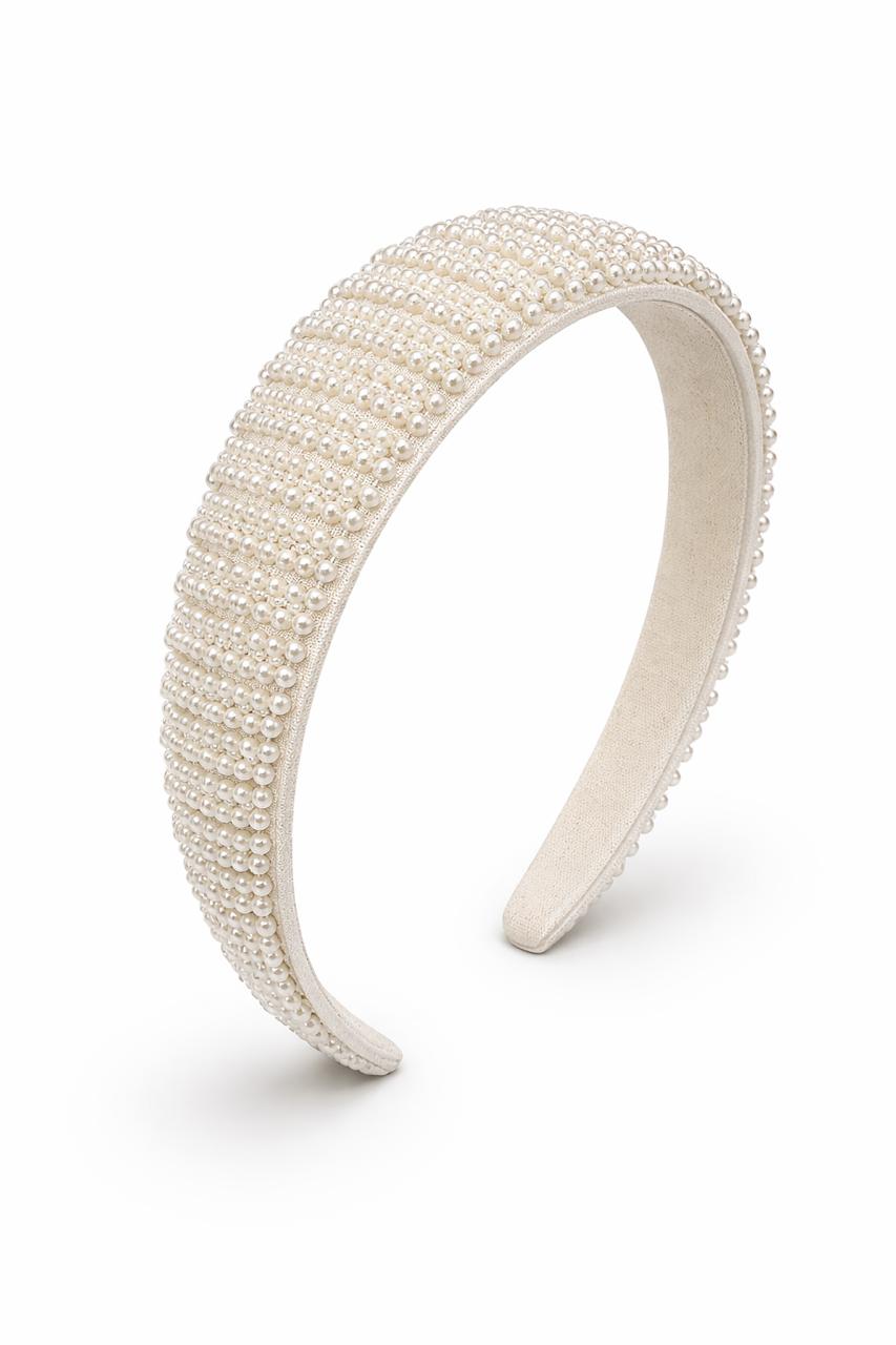 Tiara larga revestida com pérolas delicadas que trazem elegância e sofisticação ao visual. Confortável e versátil, perfeita para complementar looks do dia a dia com um toque clássico e feminino.